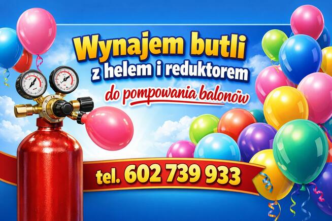 Butle z helem i reduktorem wynajmę . Umowa kaucja zwrotna 400 zł, butla 1,1 m3 helu z reduktorem 250 zł