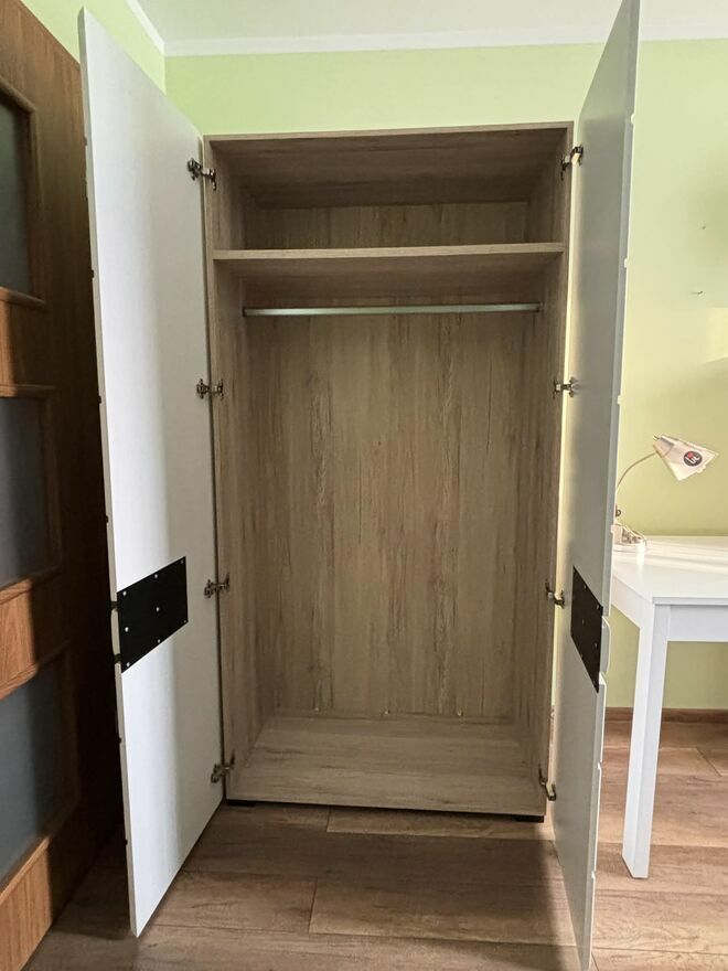 Sprzedam komodę oraz szafę w bardzo dobrym stanie. Komoda posiada w sobie dwie szuflady oraz kilka półek. Szafa posiada drążek na wieszaki oraz półkę u góry szafy.Wymiary szafy